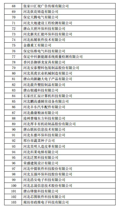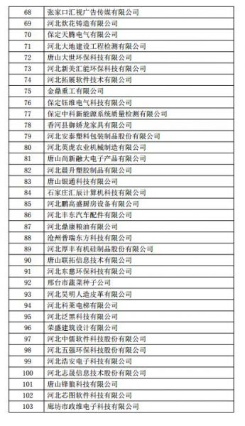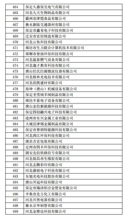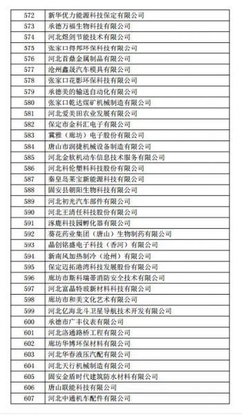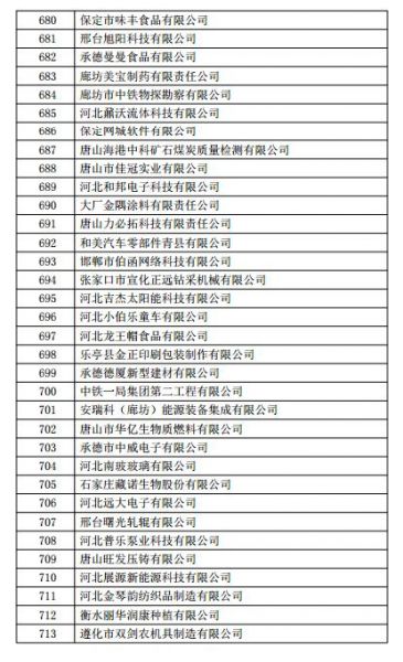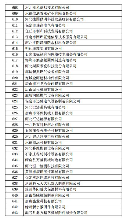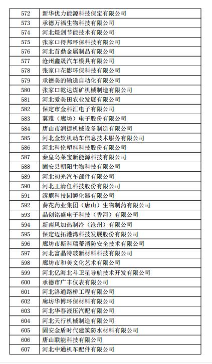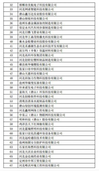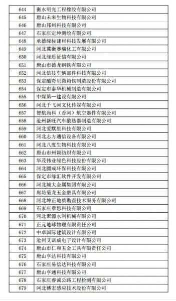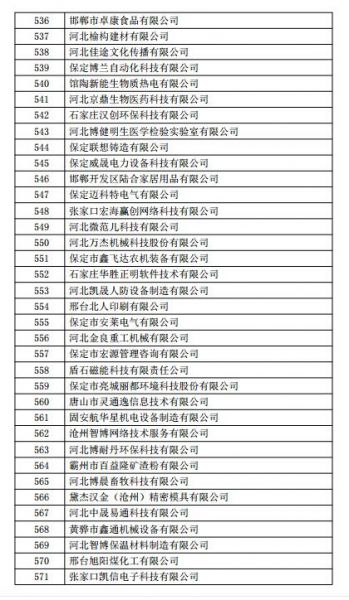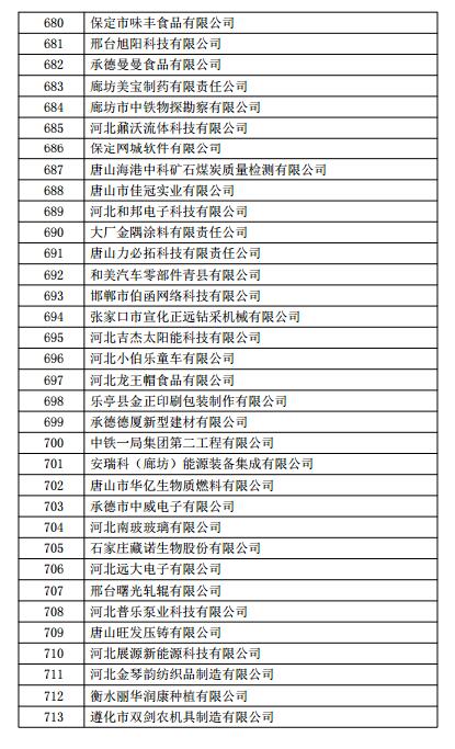 根据《高新技术企业认定管理办法》(国科发火〔2016〕32号)和《高新技术企业认定管理工作指引》(国科发火〔2016〕195号)有关规定,现将河北省2018年第一批713家企业拟认定高新技术企业名单(详见附件)予以公示,公示期为10个工作日。