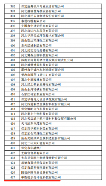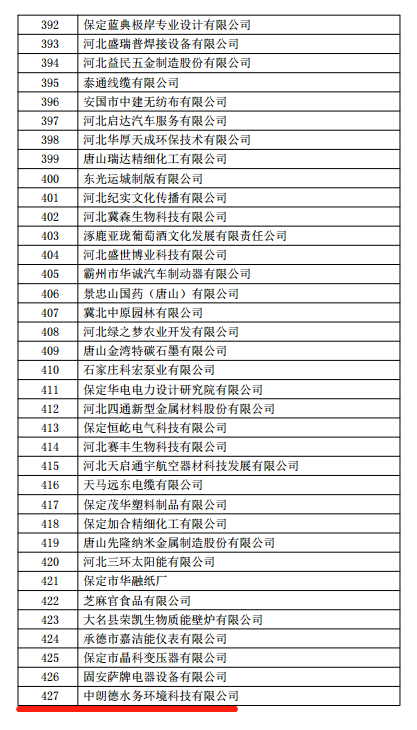 其中我公司中朗德水务环境科技有限公司已被列入《河北省2018年第一批拟认定高新技术企业名单》内,以下为附件细则: