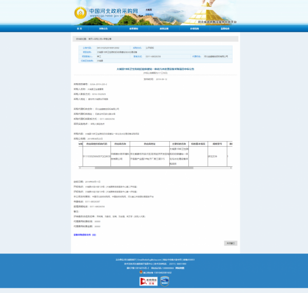 热烈祝贺中朗德水务环境科技有限公司于2019年09月11日在廊坊“大城县19所卫生院和妇幼保健站一体化污水处理设备采购项目”的投标活动中,一举中标!